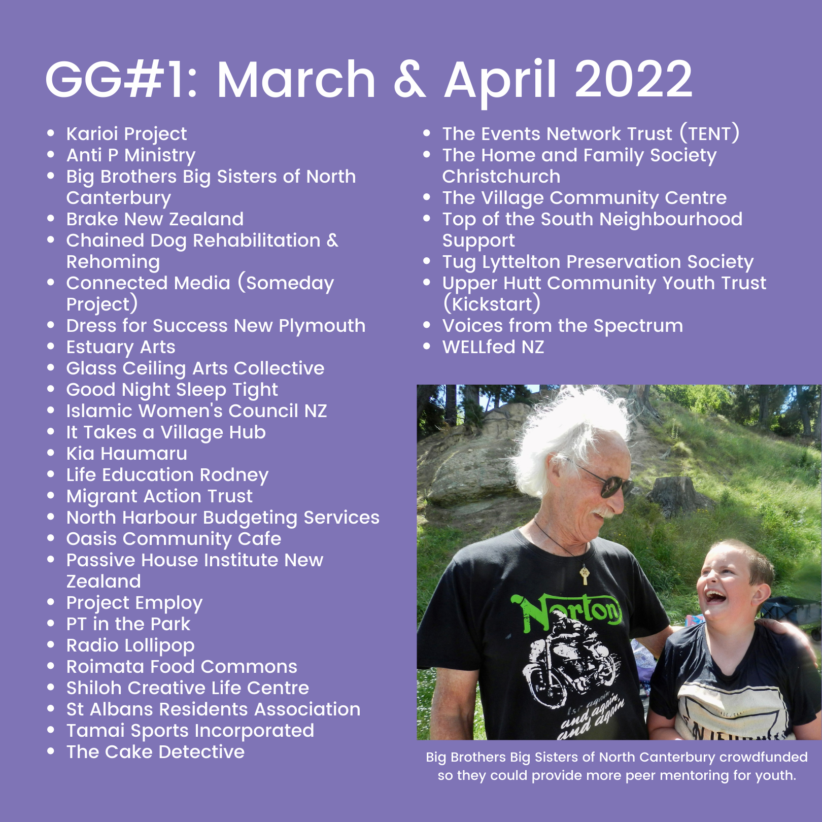 The pilot GG programme in March/April 2022 won the Fundraising Institute of New Zealand (FINZ) Excellence in Innovation Award.